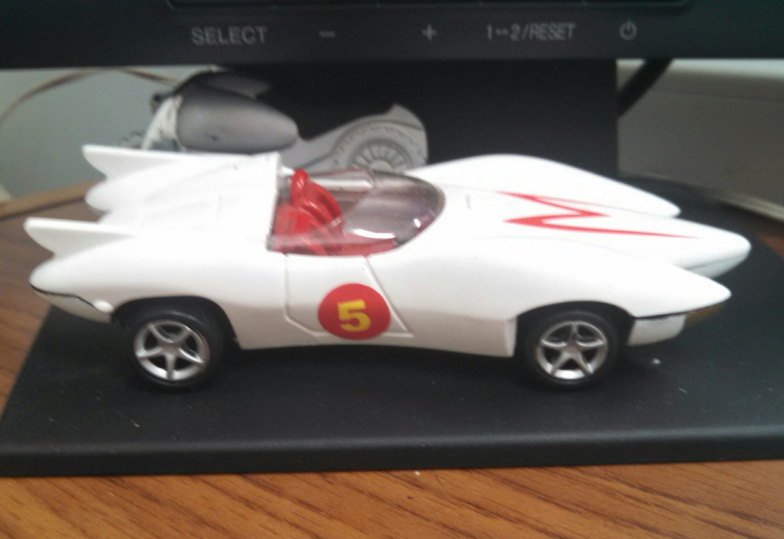 I have on my desk, a toy replica of Speed Racer’s Mark 5. I bought it a the Dollar Store for a buck.