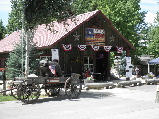 In the midst of a Hell’s Hot Saturday, we decided to hop on the bike and head up into the middle of the mountains to the little town in the middle of a lake (on a peninsula). And in the middle of this town is a restaurant that sells pieces of heaven called Texas Barbeque (speaking of Hell’s Hot) in the middle of tall shade trees, large lawns, and historic buildings.
