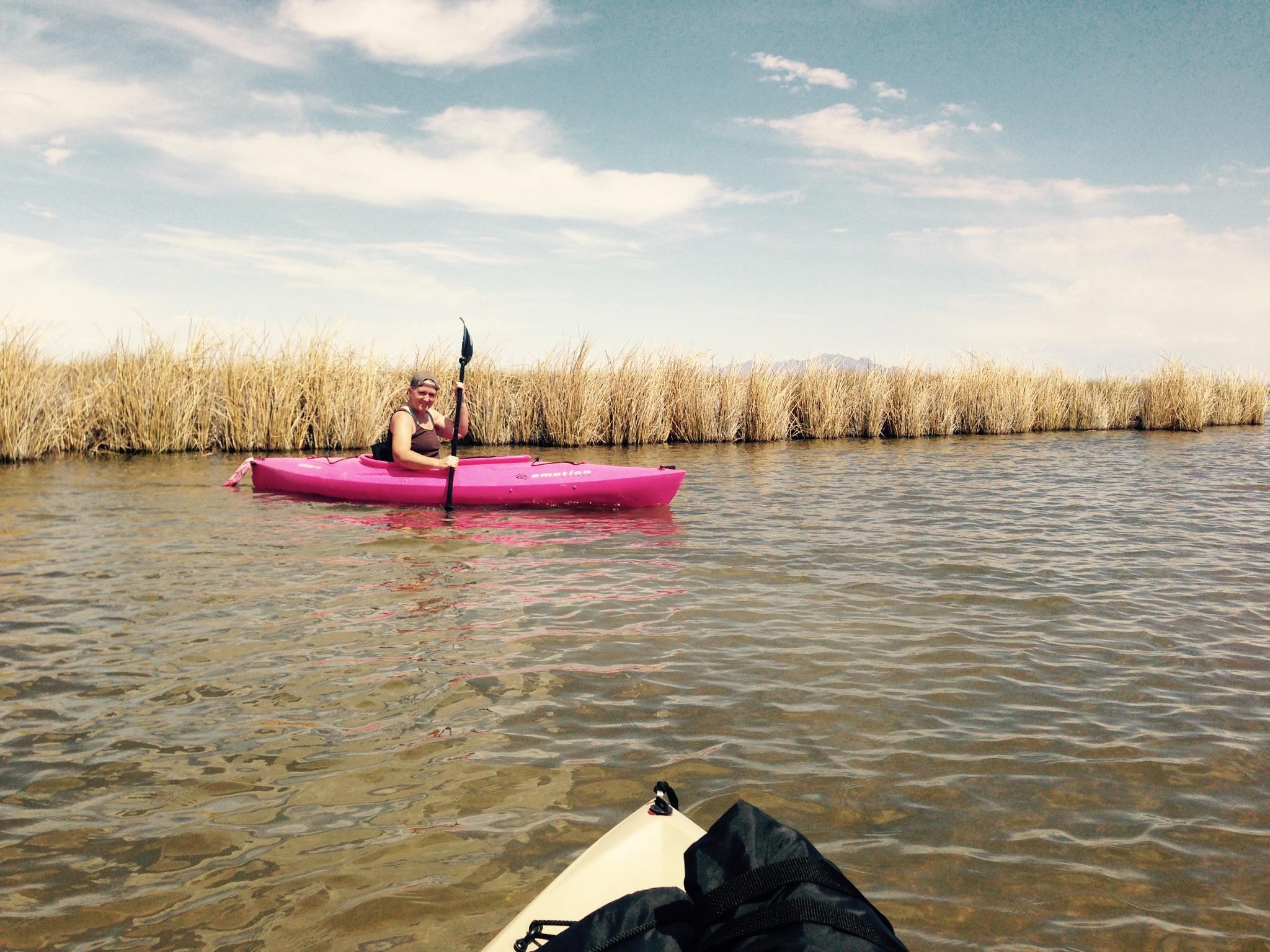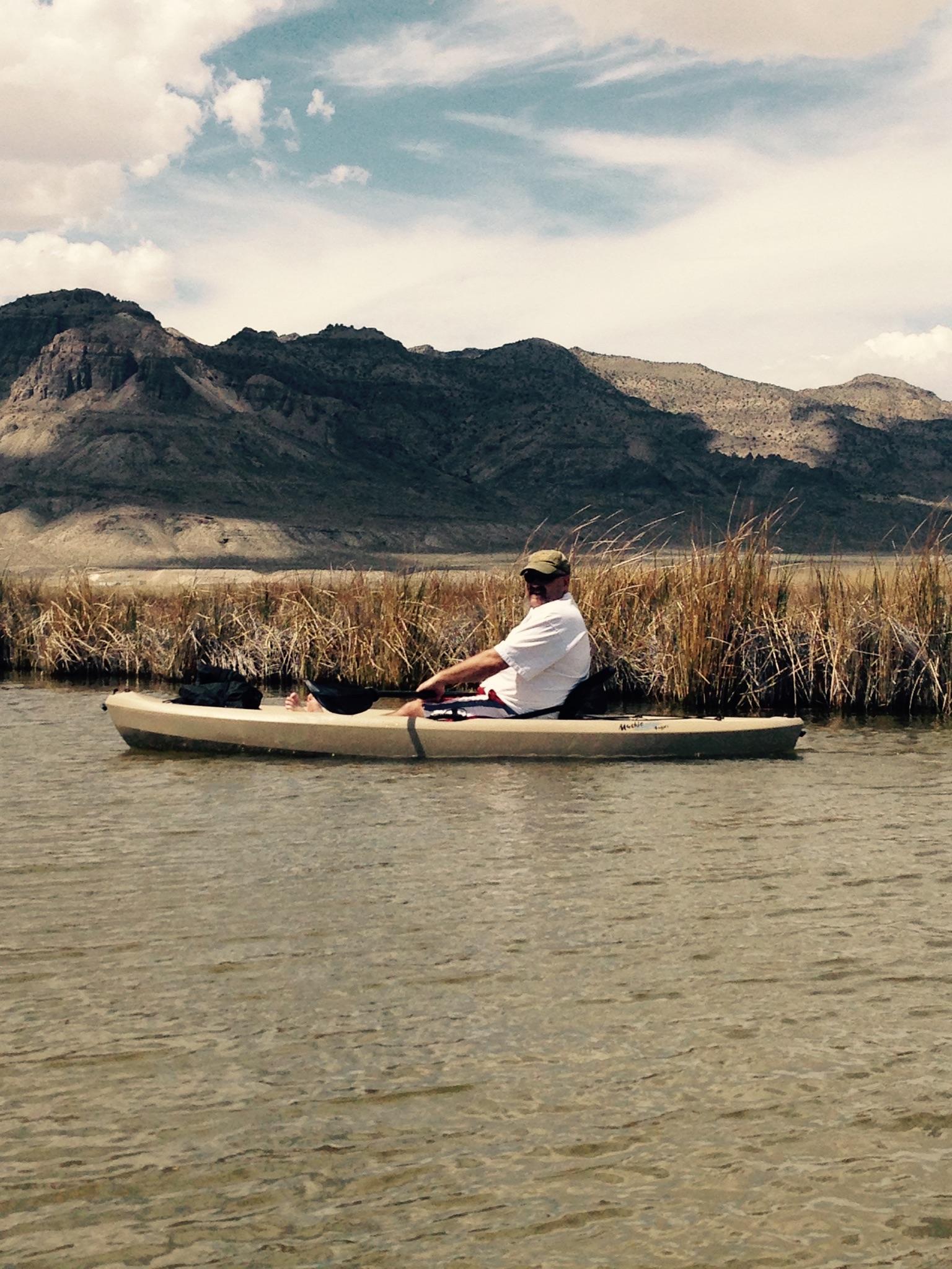 Back onto the Pony Express trail and another 30-40 miles brought us to our oasis, the Fish Springs Wildlife Refuge. A single car parked at the picnic area was the only human life we saw. We drove out along one of the levees that form the waterfowl ponds filled by the natural spring. We untied our IMG_20150503_115652_716 (1)Kayaks and paddled out into our own private tour of the waterways that few ever see.